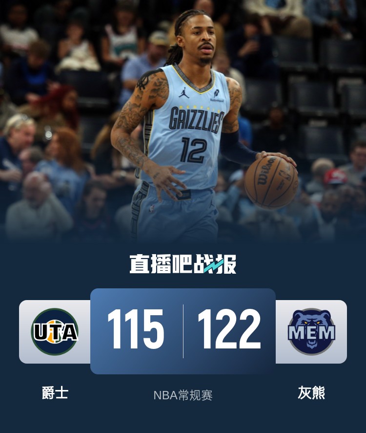 灰熊(42-24):肯纳德30分4板1助、莫兰特28分1板7助、贝恩17分5板9助、小皮蓬11分6助4断、克拉克8分4板1助3断、埃迪8分4板、GG-杰克逊8分4板、赫夫5分4板1助、韦尔斯3分4板2助、史蒂文斯2分6板、文斯-威廉姆斯2分3板3助2断