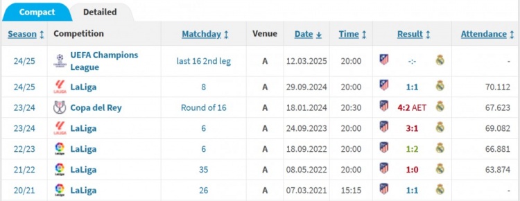 历史上,皇马在各项赛事共计117次客战马竞,战绩为44胜30平43负,进163球丢170球。