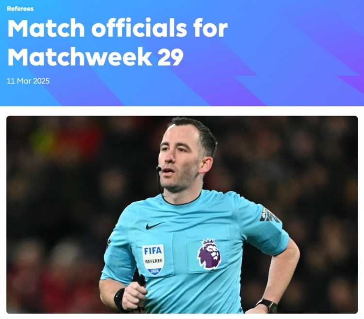 3月11日讯 英超官方公布第29轮联赛各场执法裁判,克里斯-卡瓦纳(上图)执法阿森纳vs切尔西,西蒙-胡珀执法曼城vs布莱顿。